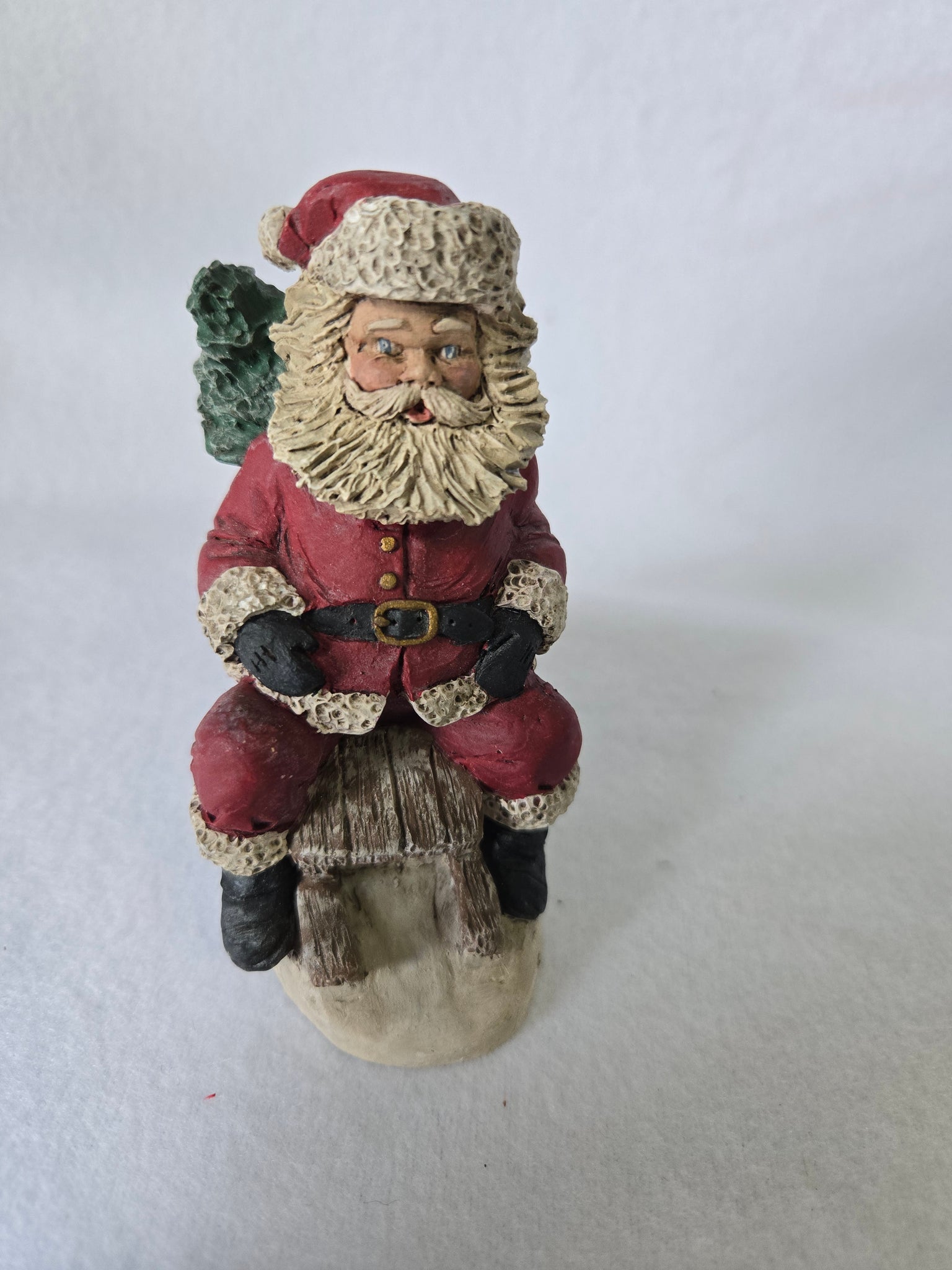 Bring home the magic of Christmas with this charming Santa Claus figurine from Tennessee Nutcracker Designs! This unique piece is a wonderful addition to any holiday decor. The figurine features Santa seated on a rustic sled with a Christmas tree on his back. Excellent vintage condition, ready to display. While similar figurines are often associated with Tom Clark, this specific piece is identified as a Tennessee Nutcracker Designs item. Approximately 4.5 inches tall and 2 inches wide.