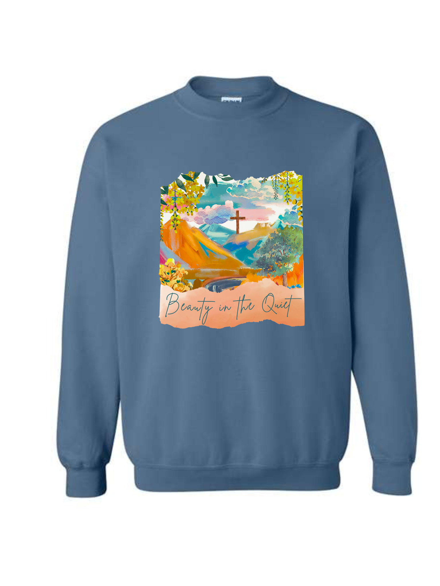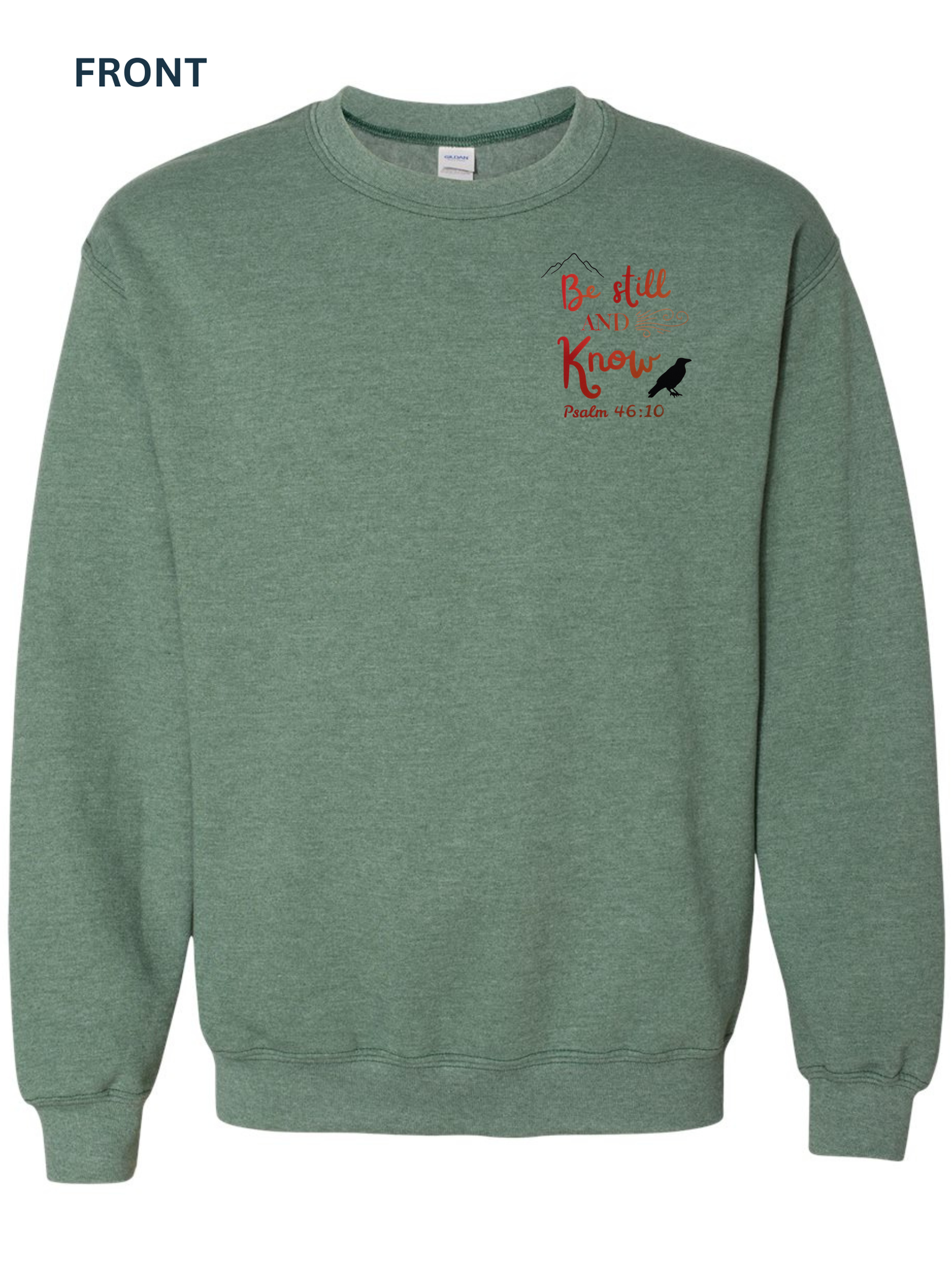 The Sweatshirts are Gildan - 50/50 Fleece Crew -Indigo Blue or Heather Green