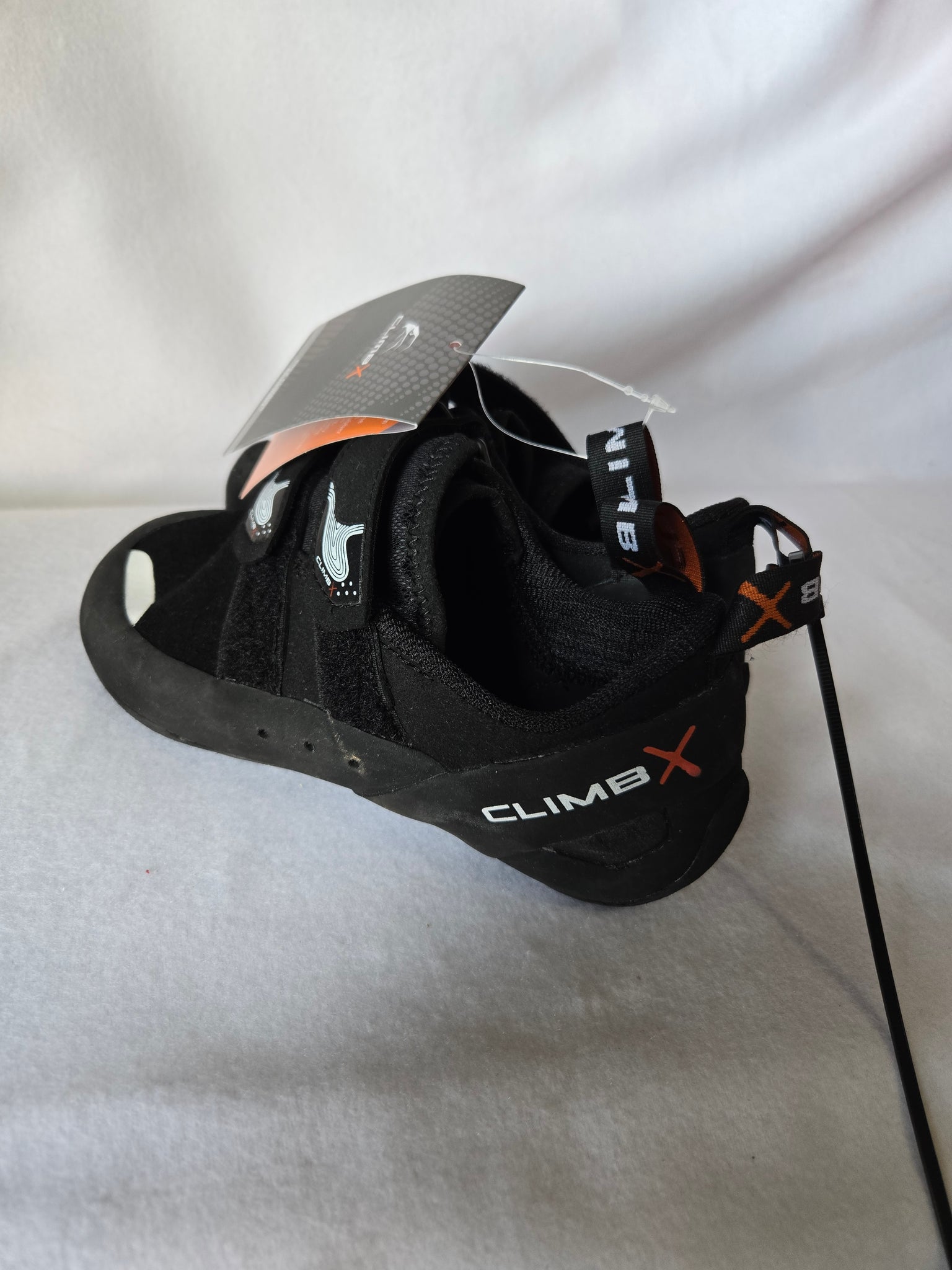 Climb X Rave Strap Climbing Shoe in Black, size 6.5, is a high-quality and durable climbing shoe designed for outdoor sports enthusiasts. Made by the reputable brand CLIMBX, this shoe is perfect for rock climbing and other related activities. The sleek black color and secure strap closure make it both stylish and functional, ensuring a comfortable and secure fit during your adventures. Its design is specifically tailored for a US size 6, making it a perfect fit for most climbers looking for a reliable and supportive shoe.